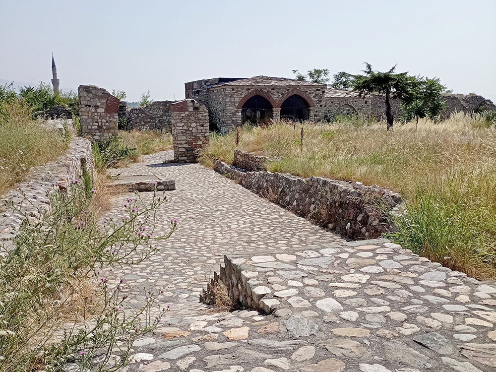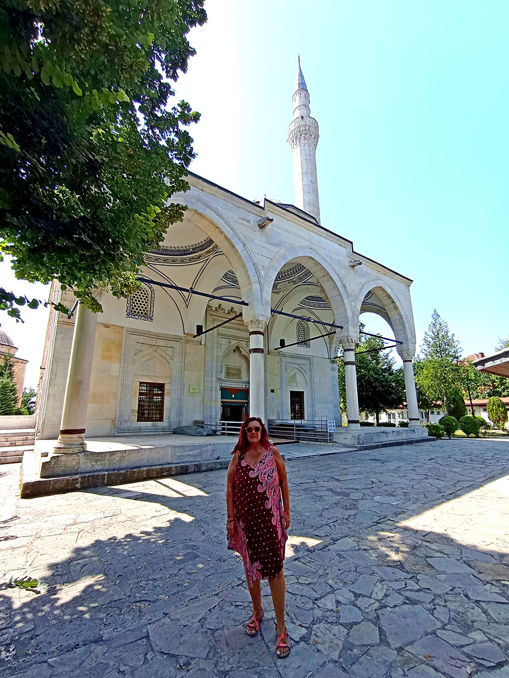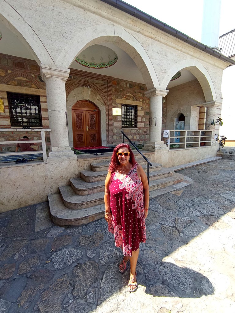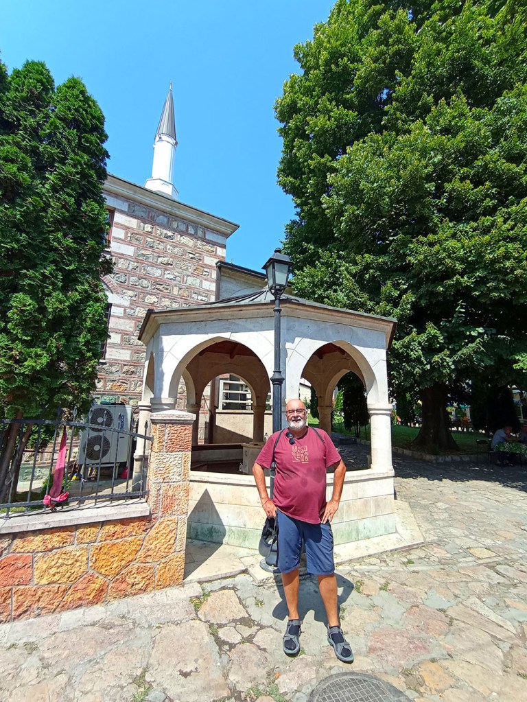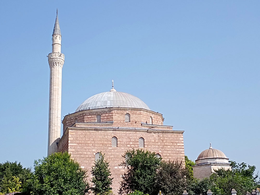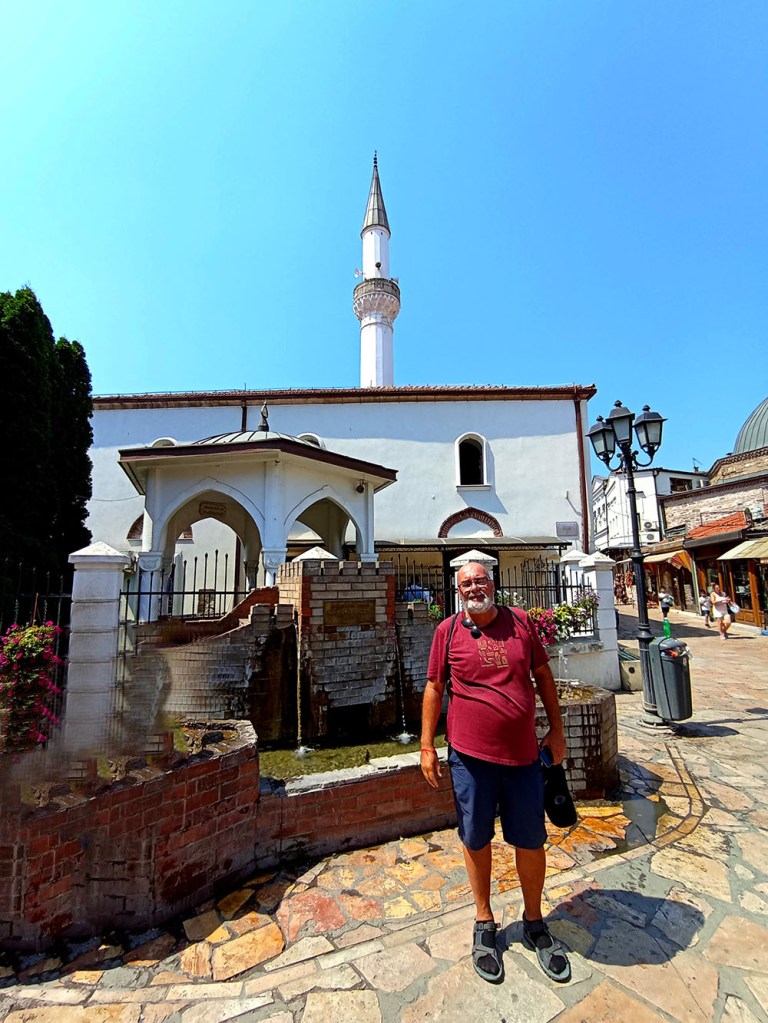 Nos dirigimos hacia la colina que domina la ciudad y que alberga la Fortaleza de Skopie o Kale, pero antes nos detenemos en la Mezquita Mustafa Pasha, construida en 1492 por orden de Çoban Mustafa Pasha, gran visir del sultán Selim I. La parte central de la mezquita es la sala de oración con una cúpula de 16,3 m de diámetro. Su interior está decorado con arabescos. A la sala de oración se accede por un pórtico de mármol blanco sostenido por cuatro columnas. El minarete de piedra caliza se eleva 47 m y la rodea un jardín de rosas con un pequeño cementerio donde descansa la hija del visir. Delante de la puerta hay una gran fuente de mármol para que los fieles hagan sus abluciones.