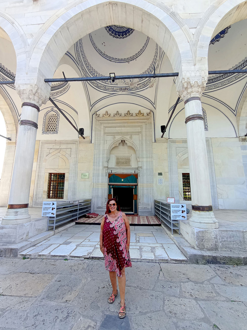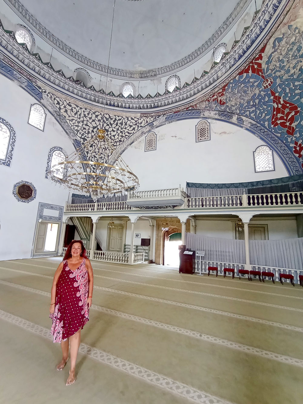 Continuamos callejeando hasta la Mezquita Murat Pasa, una placa indica que ha sido construida entre 1802 y 1803, tras arder en el incendio de 1689. El interior de la mezquita contiene un techo tapizado de madera, así como una galería o mahvil, un mahryb y una plataforma o mimber. En el patio de la mezquita hay una fuente construida en 1937.