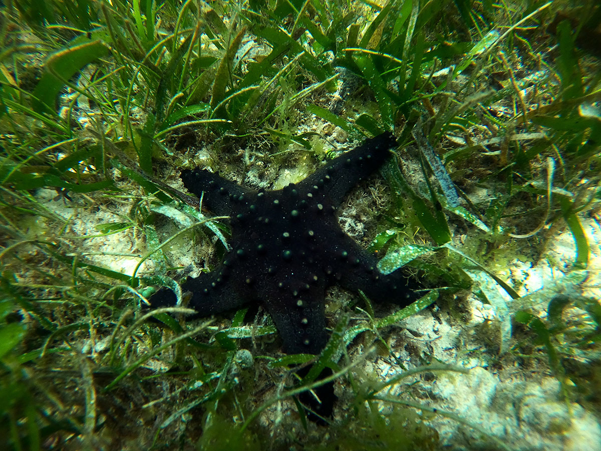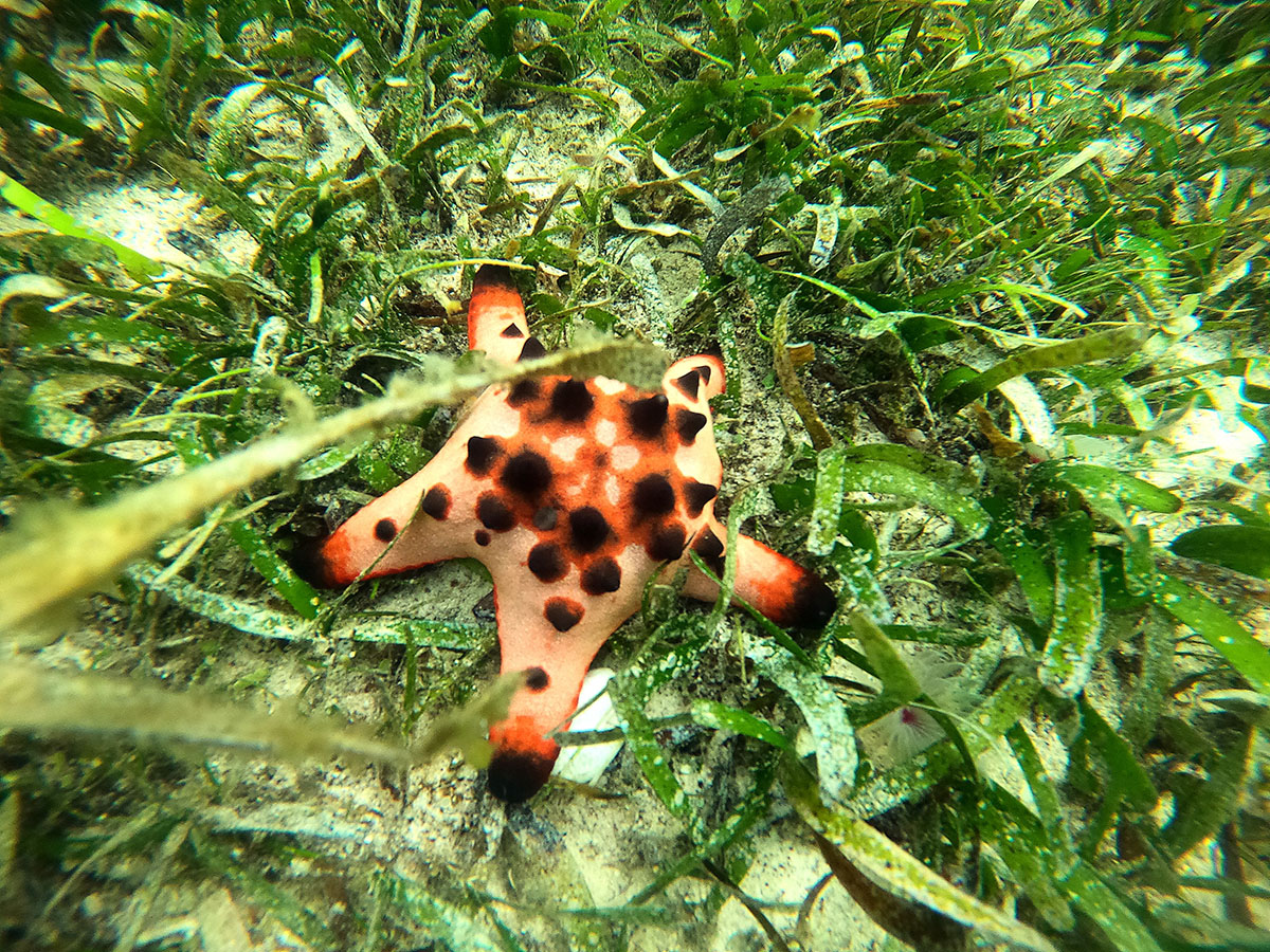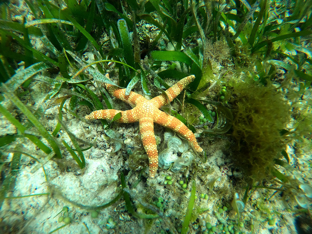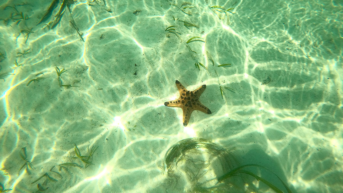 Uno de los placeres de la isla es que puedes hacer esnórquel en casi cualquier playa. En ésta en particular vimos un montón de estrellas de mar de diferentes formas y colores, pequeñas formaciones coralinas, erizos y fondos arenosos cubiertos de vegetación.