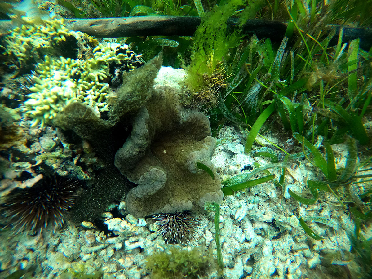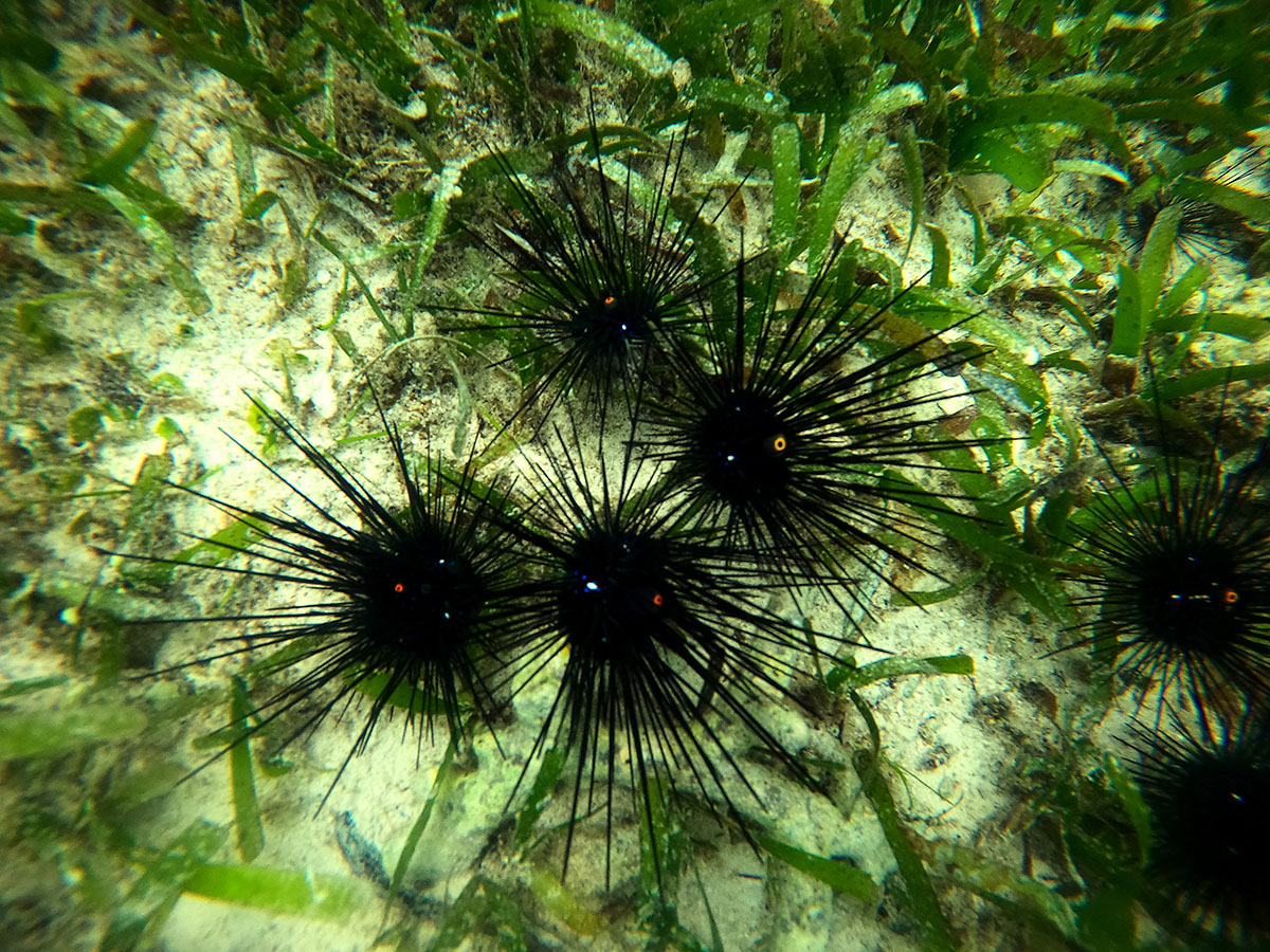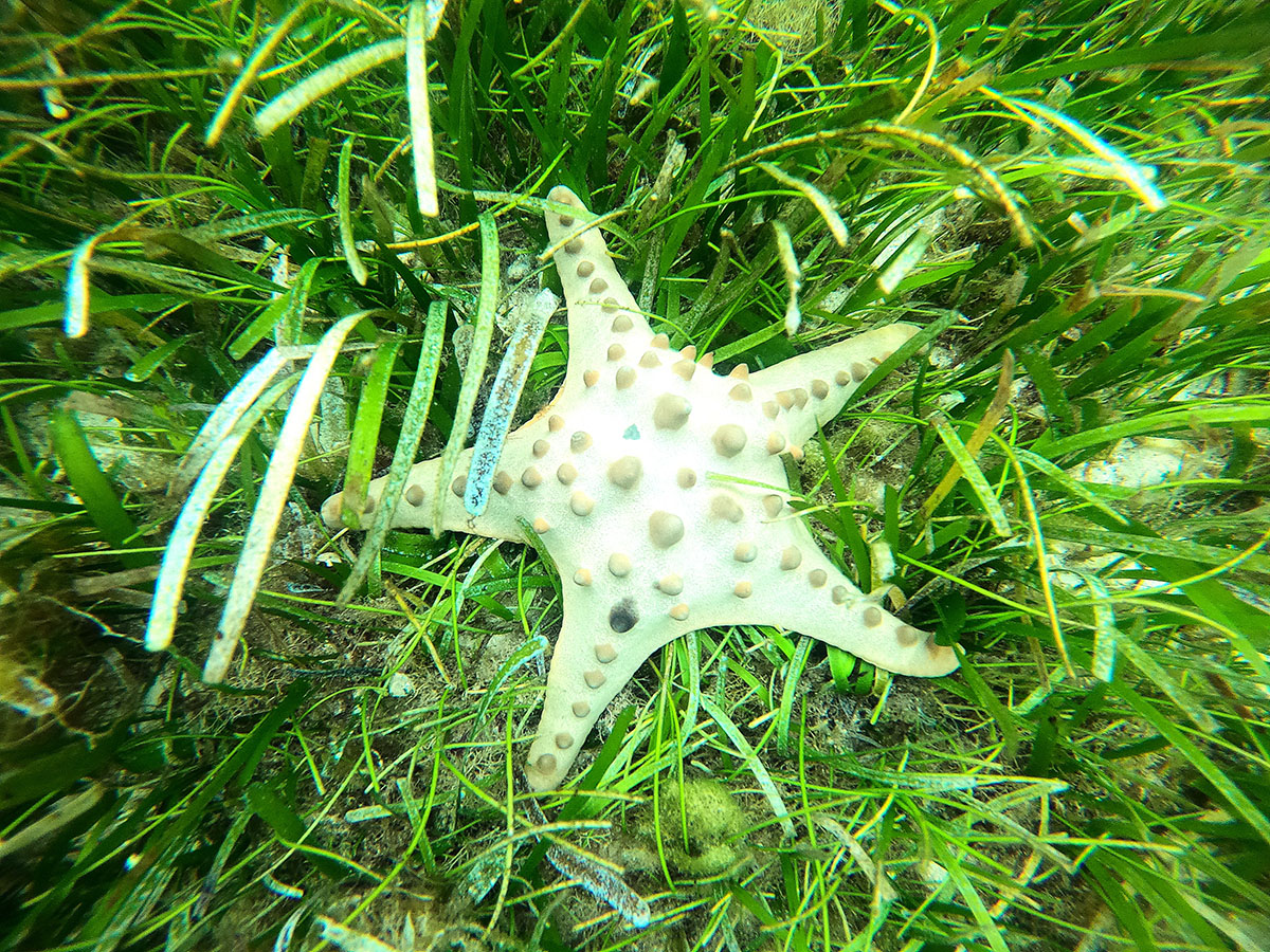 Uno de los placeres de la isla es que puedes hacer esnórquel en casi cualquier playa. En ésta en particular vimos un montón de estrellas de mar de diferentes formas y colores, pequeñas formaciones coralinas, erizos y fondos arenosos cubiertos de vegetación.