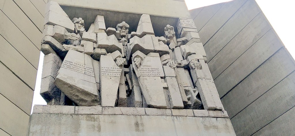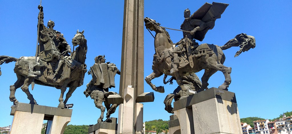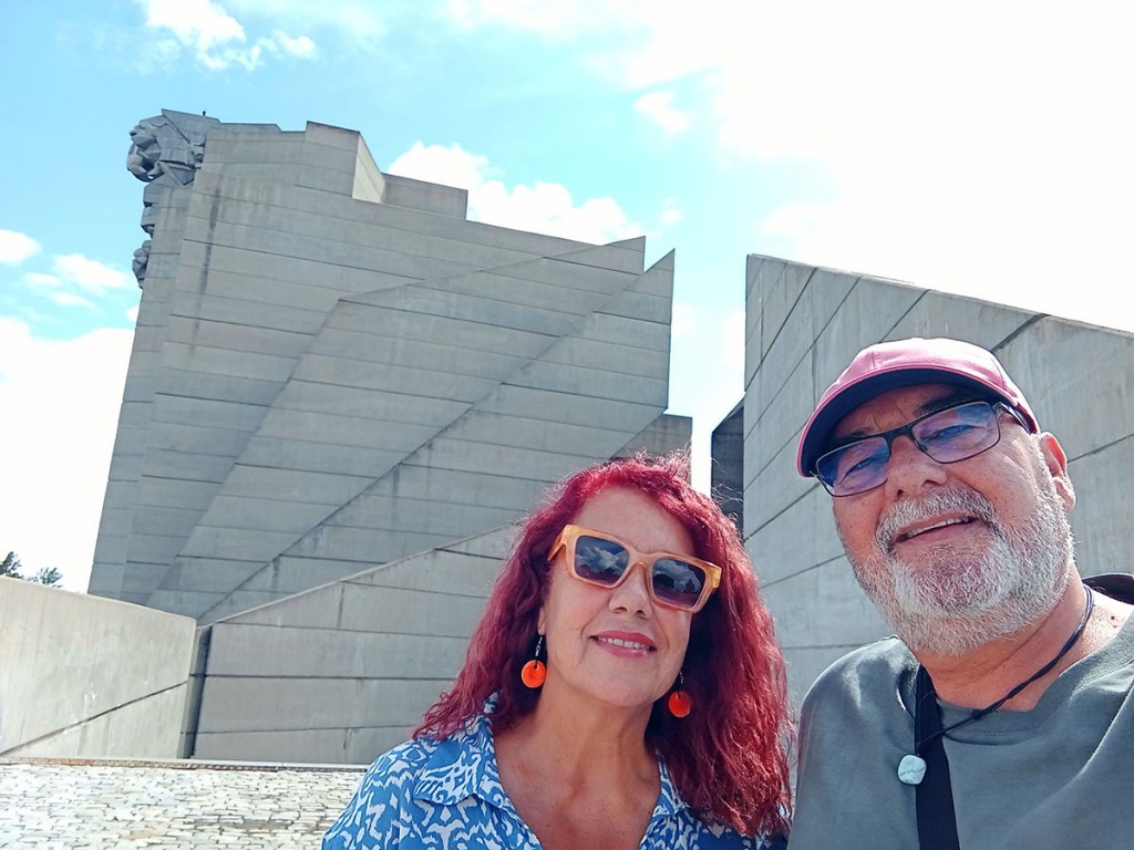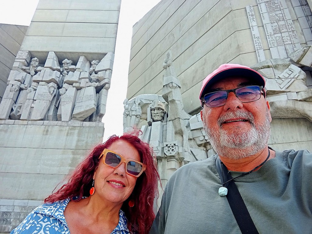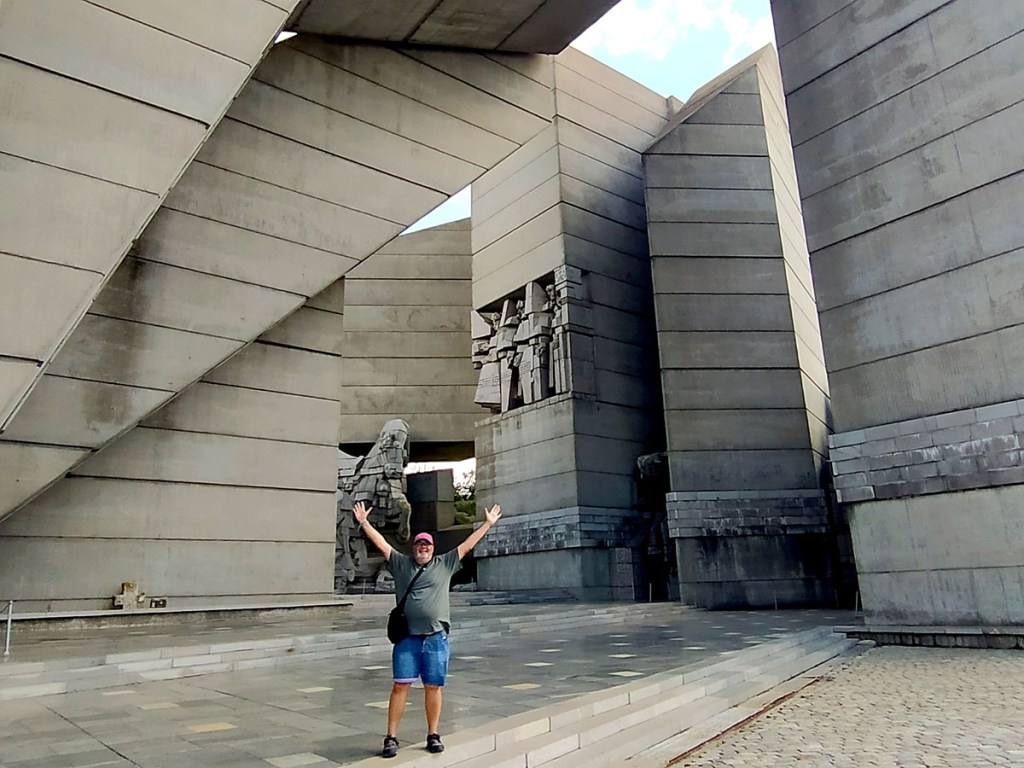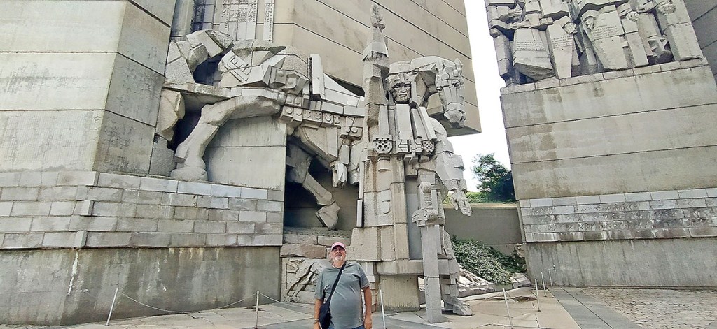 Este sorprendente monumento que se ve a kilómetros de distancia está construido en hormigón en estilo cubista, fue diseñado por los escultores búlgaros Krum Damyanov e Ivan Slavov. Se accede a él por una escalera de 1300 escalones desde Shumen o como nosotros en coche. El monumento está formado por dos bloques de hormigón orientados de norte a sur sobre los que están montadas 21 esculturas que representan a los soberanos búlgaros que reinaron entre los s. VII y XIII. Aunque a todos nos recuerdan a los juguetes Transformers, luego llevados al cine como una saga de películas.