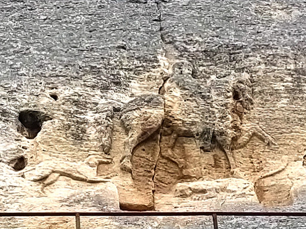 Otra de las sorpresas es la figura de un caballero de aspecto medieval esculpida en roca a 23 m sobre el suelo en un acantilado casi vertical de cien metros de altura.