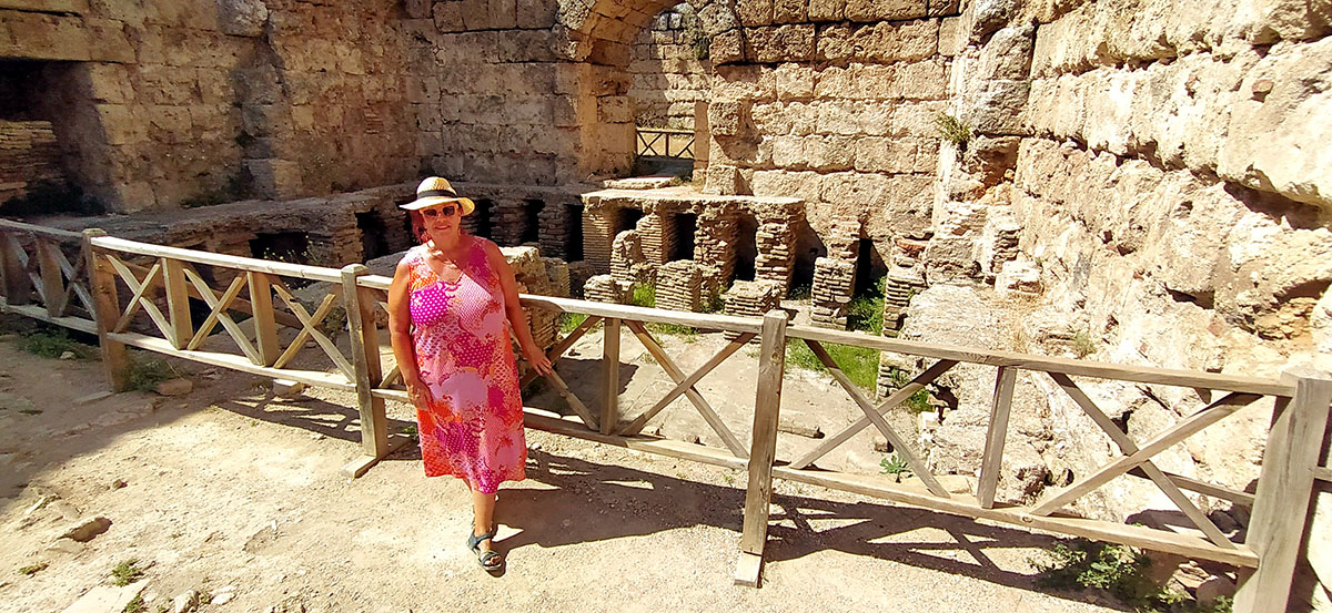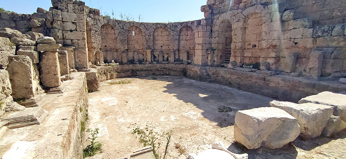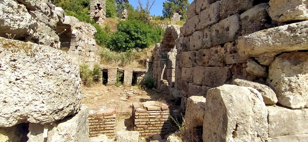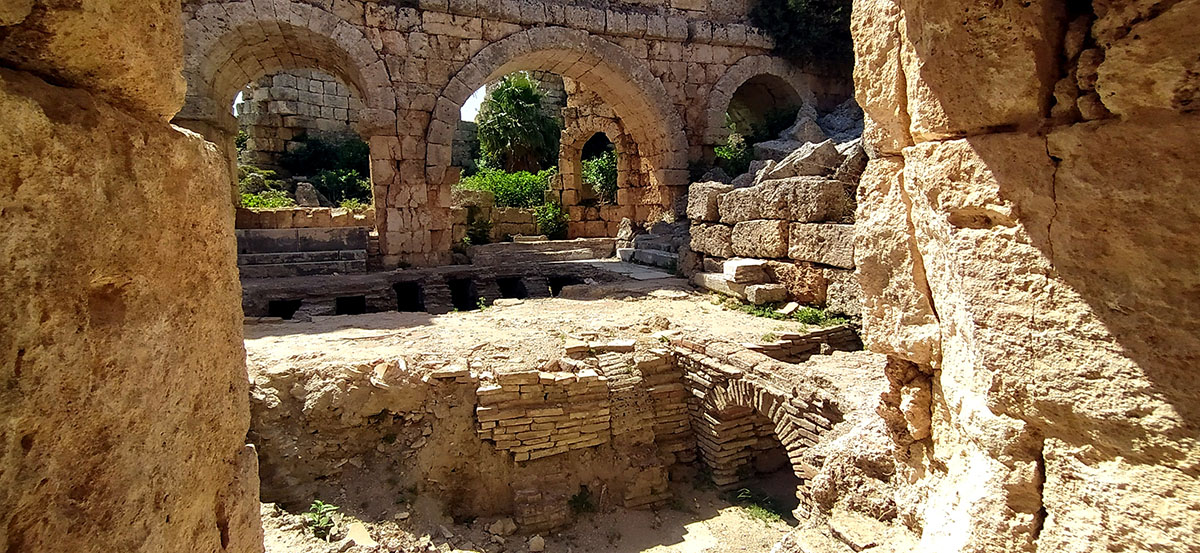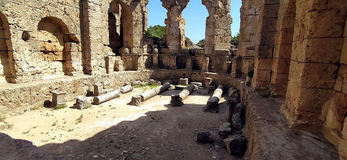 Lo primero que vemos es su acueducto romano entre pinos y junto a la playa. Desde el puerto central accederemos a la avenida principal, paseando llegaremos a las termas y al gimnasio, al ágora de Adriano, a la basílica bizantina, al teatro romano y al foro imperial, que solía ser el centro de la vida pública en la antigua ciudad. Continuando nuestro recorrido, podremos observar las ruinas de antiguas viviendas, templos y edificios administrativos que dejan entrever la grandeza de la civilización que habitó este lugar. Finalmente, llegaremos al puerto sur, donde podremos disfrutar de la brisa marina y contemplar el paisaje costero que rodea este histórico enclave.