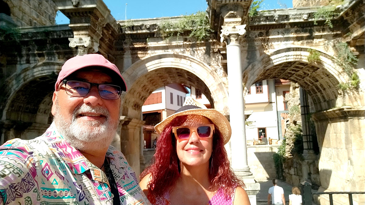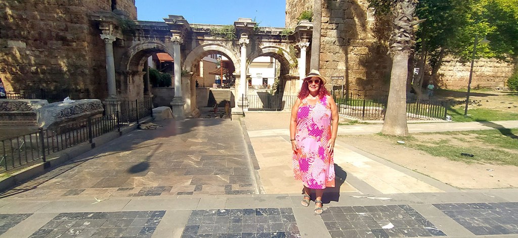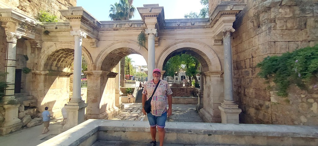 Comenzamos nuestro recorrido por las callejuelas de su Kaleici o barrio histórico. Entrando por la antigua Puerta de Adriano, levantada en su honor en el año 130 d.C. Según la leyenda, la Reina de Saba pasó por aquí de camino al palacio de Aspendo durante su visita al Rey Salomón.