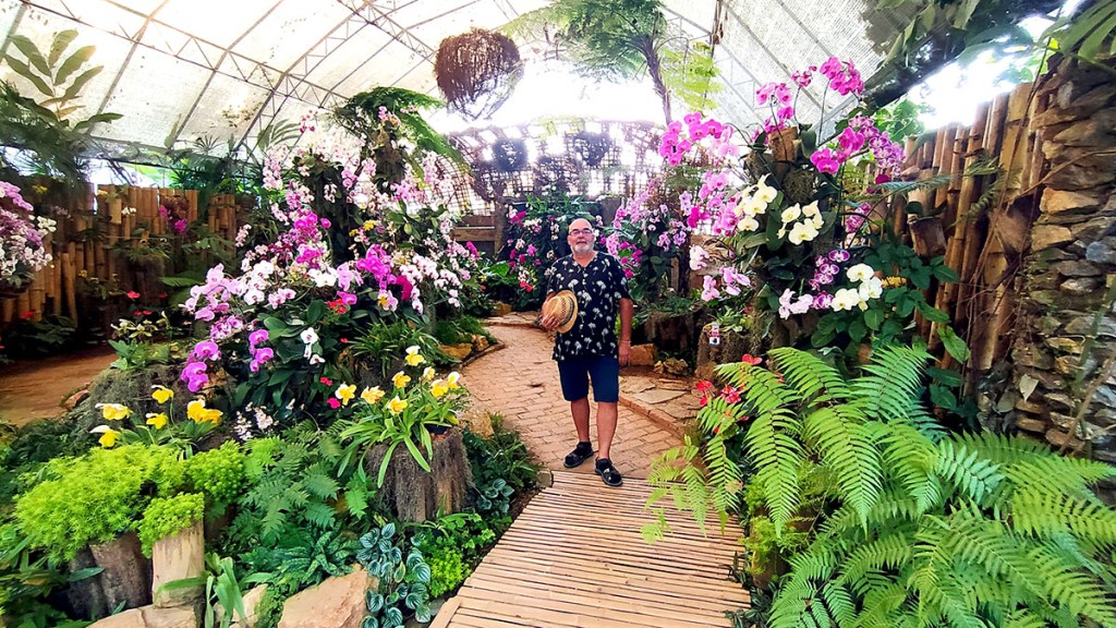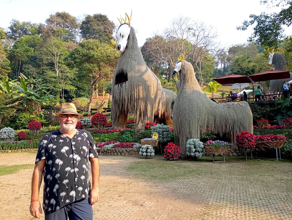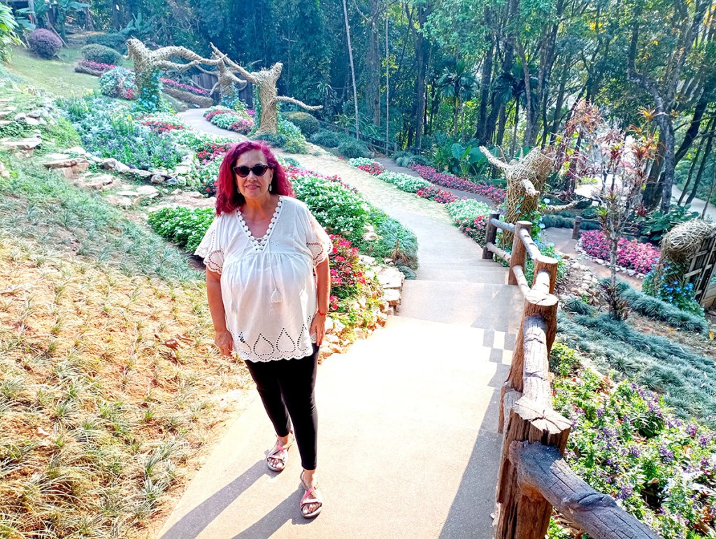 Ahora nos dirigimos a la región montañosa cubierta de exuberante vegetación ubicada al norte del país, cerca de la frontera con Myanmar, hacia la montaña Doi Tung, sin abandonar la zona del Triangulo de Oro. La Antigua zona de cultivo de opio ha sido regenerada por completo gracias al empeño de su Alteza Real la Princesa Srinagarindra, madre del Rey Rama IX, ya fallecida. Mandó a construir una villa real aquí y a restaurar el bosque destruido, creando un jardín con flora nativa y especies raras que crecen junto a rododendros de varios países.