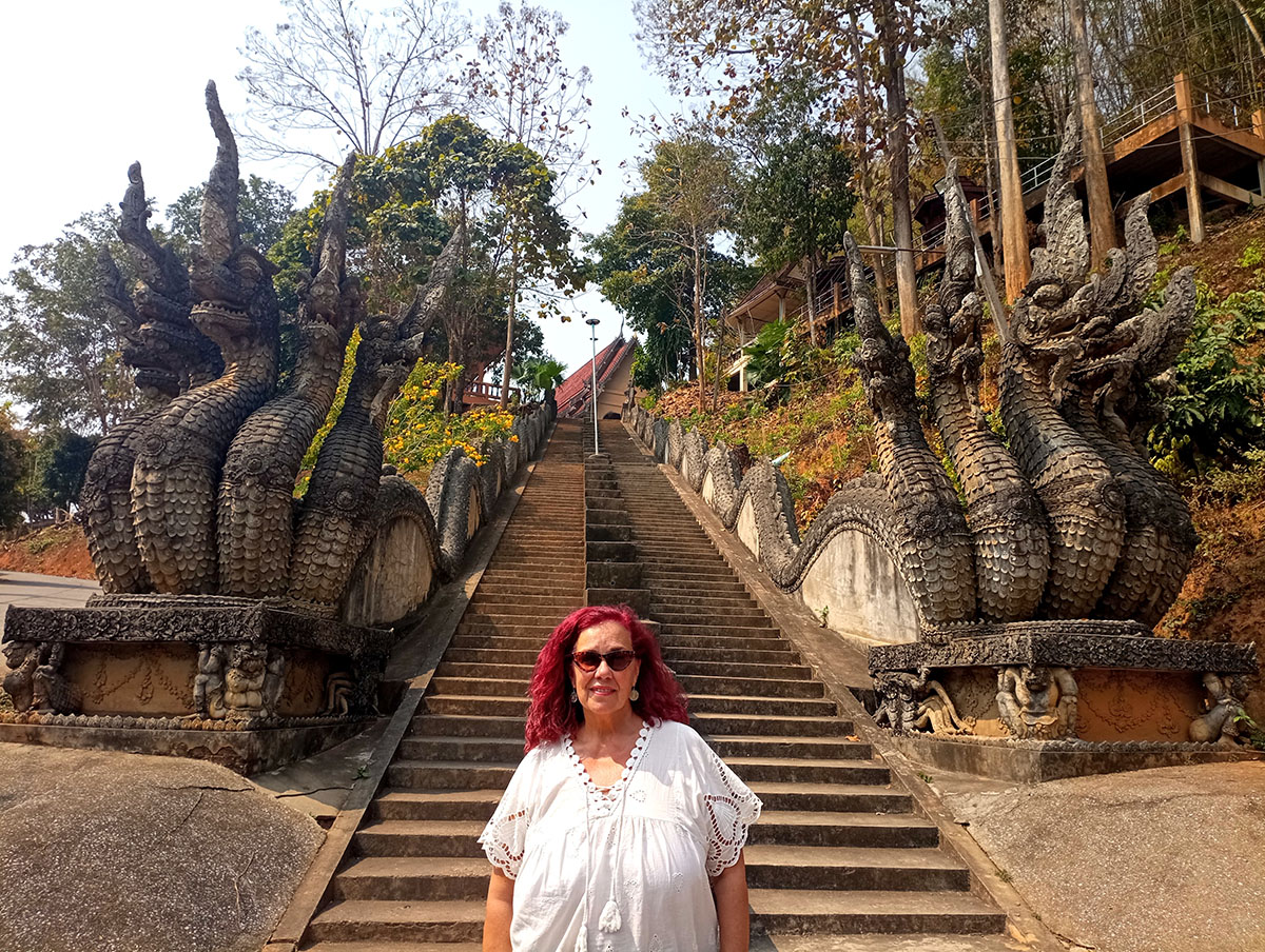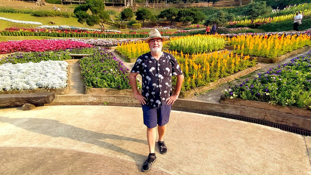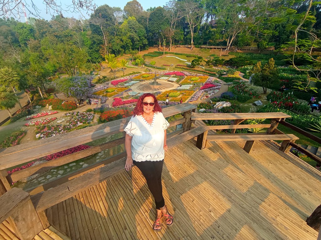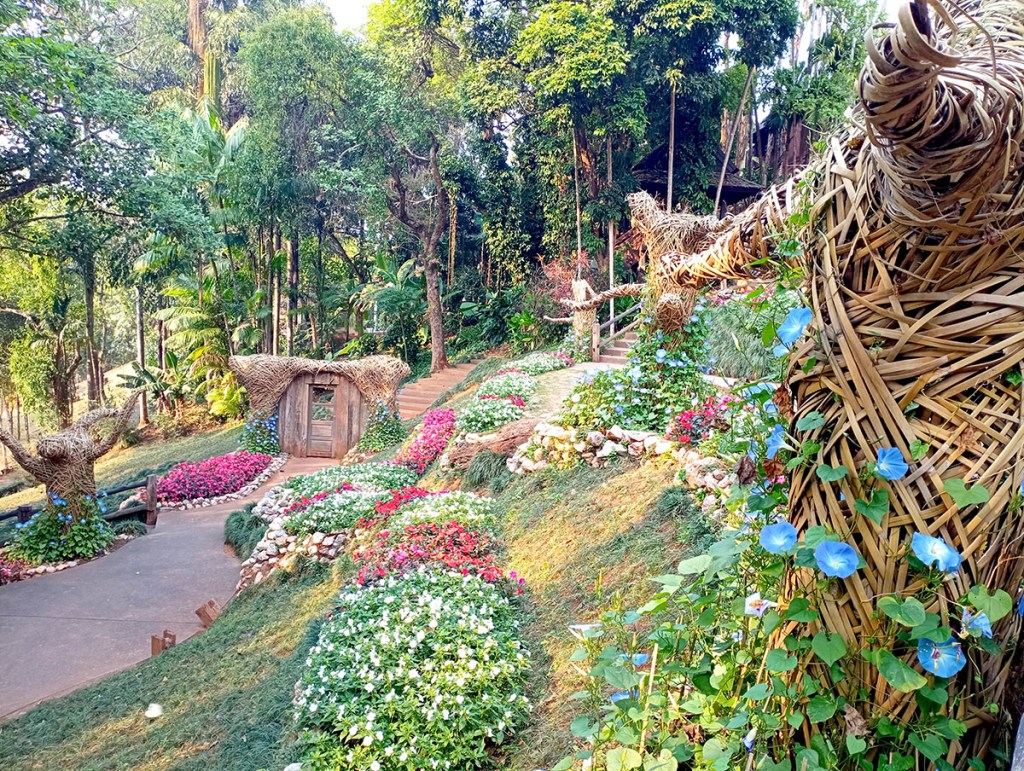El jardín de Mae Fah Luang (45 baht2023), Madre del Cielo, así llamaban las tribus locales a la reina madre pues llegaba en helicóptero porque los caminos eran intransitables. Los jardines ornamentales están repartidos en 10 hectáreas de terreno, entre pequeños lagos y senderos que serpentean entre pinos y ofrecen miradores panorámicos con vistas de las laderas de las montañas y de los países vecinos de Myanmar y Laos.