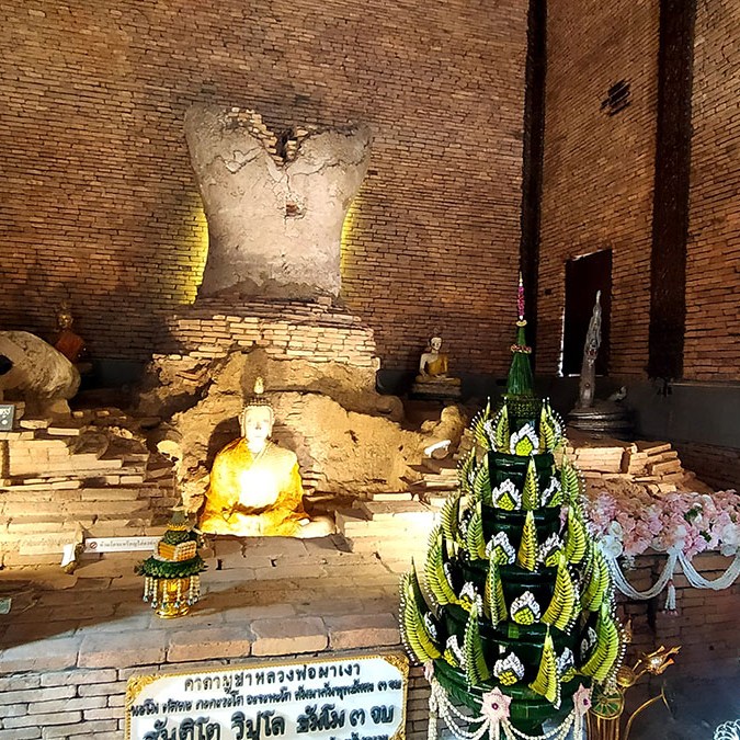 Nos dirigimos al Viharn o sala de oración, denominado Luang Por Pha Ngao de reciente construcción que alberga las estatuas de Buda, que descubrieron los monjes en 1976 según parece después de un sueño. Las imágenes bastante deterioradas datan de entre el 700 y 1300.