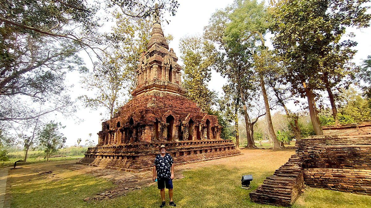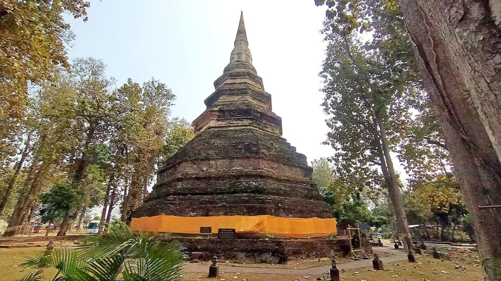 Ubicado justo fuera de las antiguas murallas de la ciudad, su nombre deriva de los 300 árboles de teca plantados en el momento de su fundación. Los orígenes del templo se remontan a los s. XIII o XIV. Hay restos de varias salas de reuniones, pero el monumento principal es su chedi piramidal, con 12 grandes nichos y 16 más pequeños, decorados con imágenes de Buda de estilo Sukhothai.