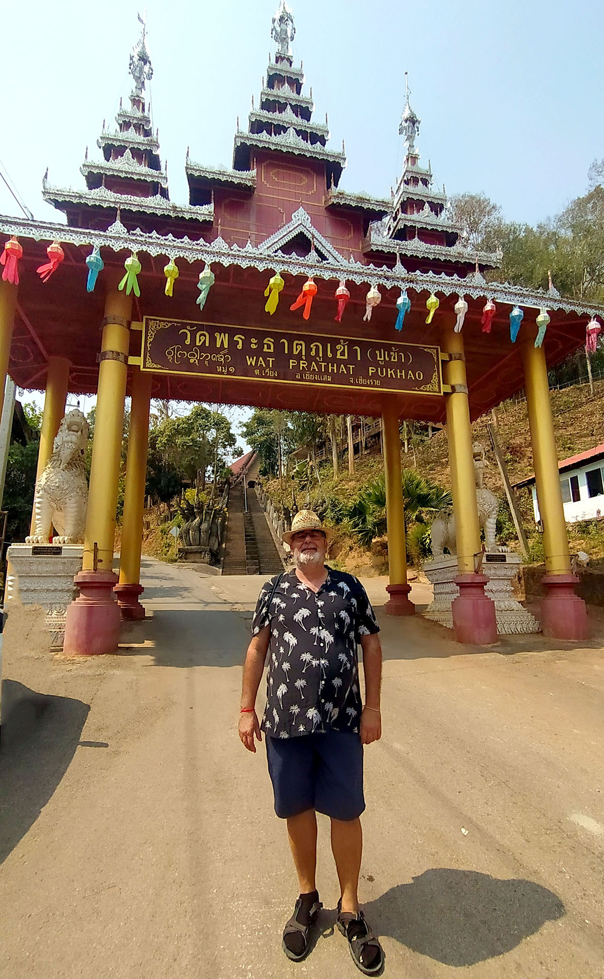 Una gran puerta seguida por una escalera protegidas por Nagas permiten ascender la colina hasta donde se encuentra el templo Wat Phra That Pu Khao (gratis). Pero antes de llegar a lo alto de la colina encontramos el Wat Sop Ruak, un sencillo templo blanco con un buda en su interior y varios altares. En lo alto se encuentra el Wat Phra That Pu Khao construido por el rey de Wiang Hirannakhon Ngoen Yang a mediados del siglo VIII. Aparte del templo solo quedan algunas capillas y estupas derruidas.