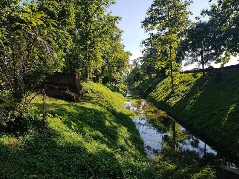 La ciudad estaba protegida por una muralla que se construyó en 1328 d.C. Se tuvo que cavar un foso en tres de sus lados, mientras que el cuarto lado era el río Mekong. Detrás del foso había un muro de tierra y un total de cinco puertas conducían a la ciudad. La ciudad fue conquistada por los ejércitos combinados de Chiang Mai y Siam en 1804 y su población deportada. Hoy en día los árboles han brotado a través de las antiguas murallas de la ciudad y se han hecho dueños de uno de los asentamientos más antiguos de Tailandia.