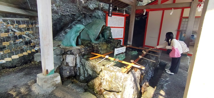 En el mismo pueblo de Osatsu visitamos el templo Shinmei Shrine, que está dedicado a la diosa Ishigami-San, también conocida como la deidad de piedra y ha sido durante mucho tiempo un lugar donde las Amas de la zona rezaban por su seguridad. La deidad concede al menos un deseo a las mujeres y basta con escribirlo en el Papel de los Deseos, que se vende en la tienda del santuario y depositarlo en la urna frente al Dios y rezar. También es muy popular un singular amuleto de la suerte con una estrella bordada y rejillas. Como una estrella se podía dibujar de un solo trazo, las buceadoras creían que podían regresar al punto de partida después de la inmersión.