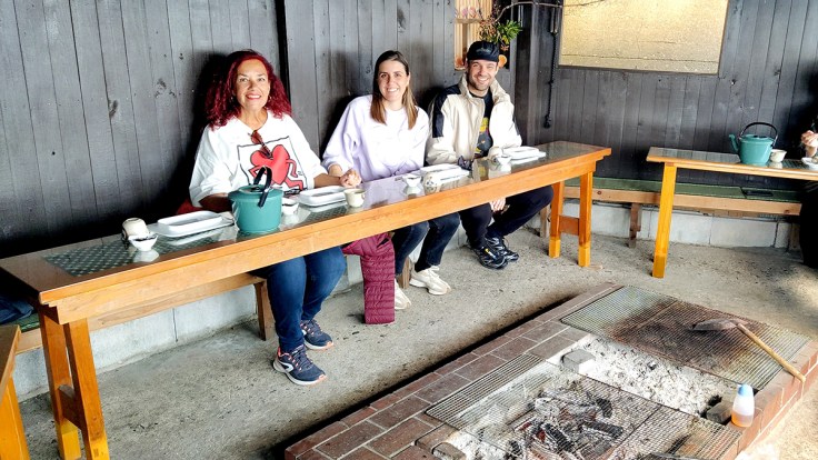 Habíamos reservado en Ozego-San, una cabaña al final de un estrecho sendero que discurre desde el malecón del puerto junto a la orilla del mar. Las amas con su antiguo traje de buceo cocinan en una parrilla sobre brasas de carbón; jurel, almejas gigantes, conchas turbante, vieiras, mariscos secos, langostas y abulones, servido con arroz con erizo de mar y una sopa de miso. Disfrutamos mucho de esta experiencia culinaria de platos de marisco fresco. Teniendo muy claro lo que significa para ellas perder su modo de vida y sustento, teniendo que buscar alternativas para mantener viva una tradición cultural milenaria.
