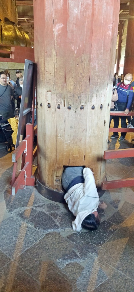 Una riada de gente te indica que te estas acercando al Templo Todai-ji, fundado en el año 752 por el Emperador Shōmu, aunque el actual data del año 1709. Se accede a través de la Puerta Nandaimon o Gran Puerta Sur. Siendo la puerta de madera más grande del país con 25 m de altura, construida en el año 1203. Está custodiada por dos enormes y feroces estatuas de madera de guardianes Nio o Kongorikishi.