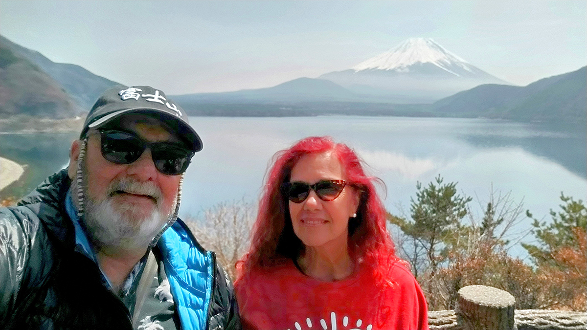 La imagen más icónica del Japón es el Monte Fuji o Fujisan, con sus 3,775 m, le gana al Teide por 60 m, se encuentra en la isla de Honshu, en la prefectura de Yamanashi, al oeste de Tokio. Es un estratovolcán activo, aunque con bajo riesgo de erupción. Es un lugar sagrado, de culto para el sintoísmo y fuente de inspiración artística. Pero ver nítidamente su silueta cónica y simétrica, a menudo coronada de nieve, es toda una aventura y una suerte. A menudo las nubes cubren la montaña y en la mayoría de los blogs aconsejan la visita en invierno. En cualquier caso, nosotros nos arriesgamos en primavera, en plena floración de los almendros, y ya les digo que tuvimos mucha, pero mucha suerte.