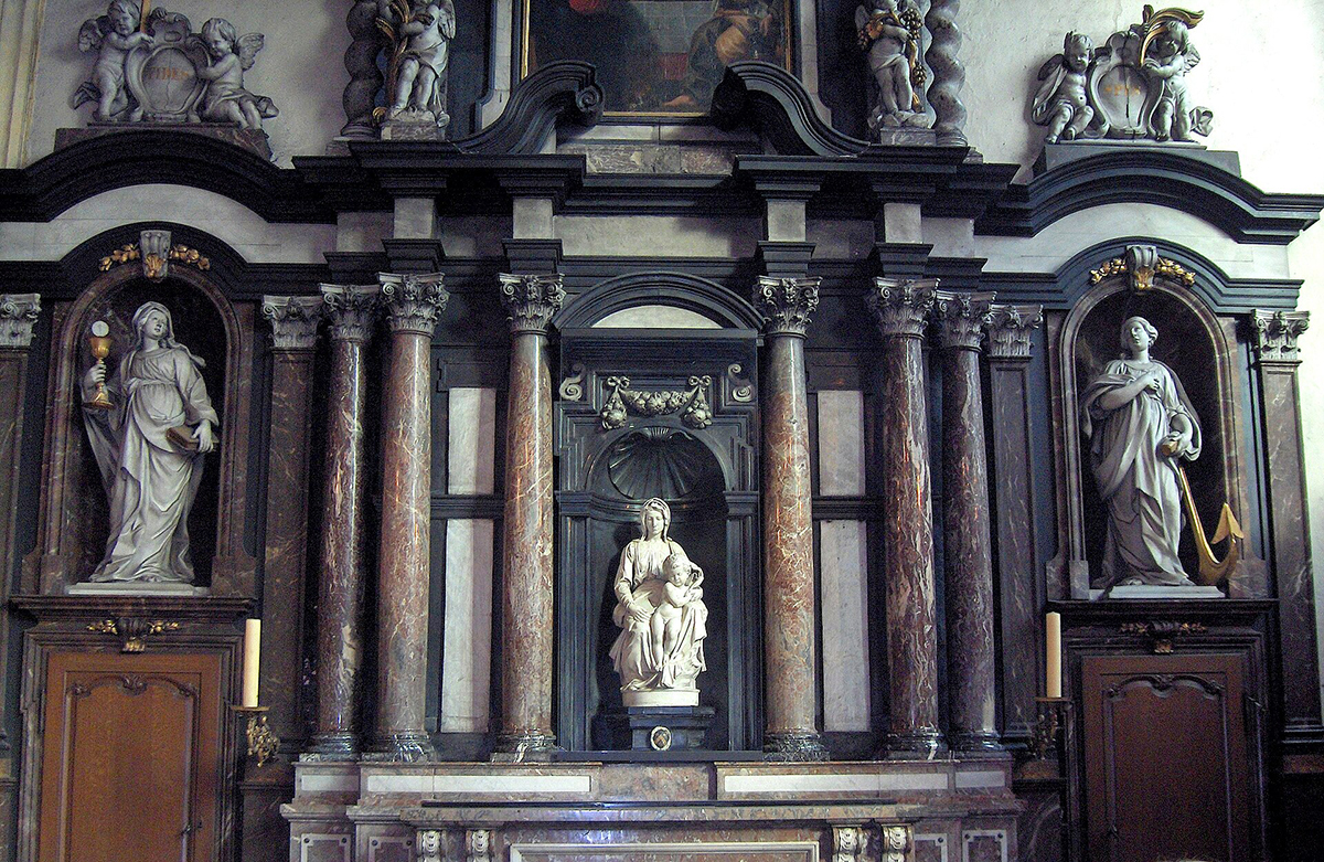 El mayor tesoro de la iglesia es la escultura en mármol de Carrara conocida como la Madonna de Brujas de Miguel Ángel, es la única obra del artista que salió de Italia mientras éste aún estaba vivo. Además en el coro, puedes admirar los impresionantes mausoleos de María de Borgoña y de su padre, Carlos el Temerario, el último duque de Borgoña. El acceso a esta parte de la iglesia es de pago, 8 €2025.mbas Ducales