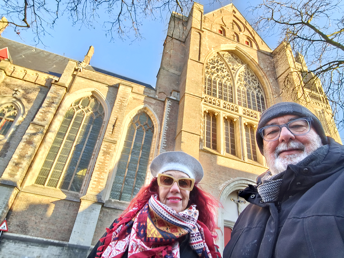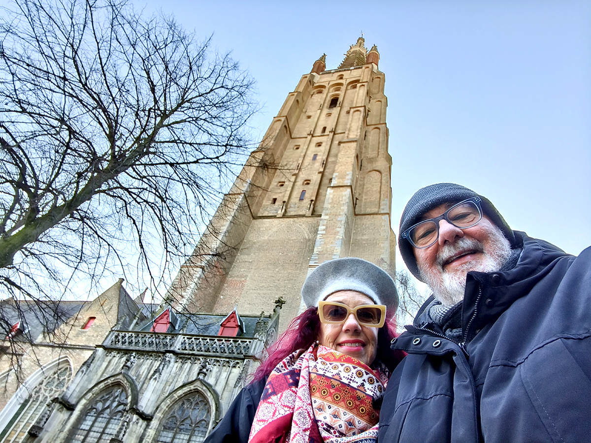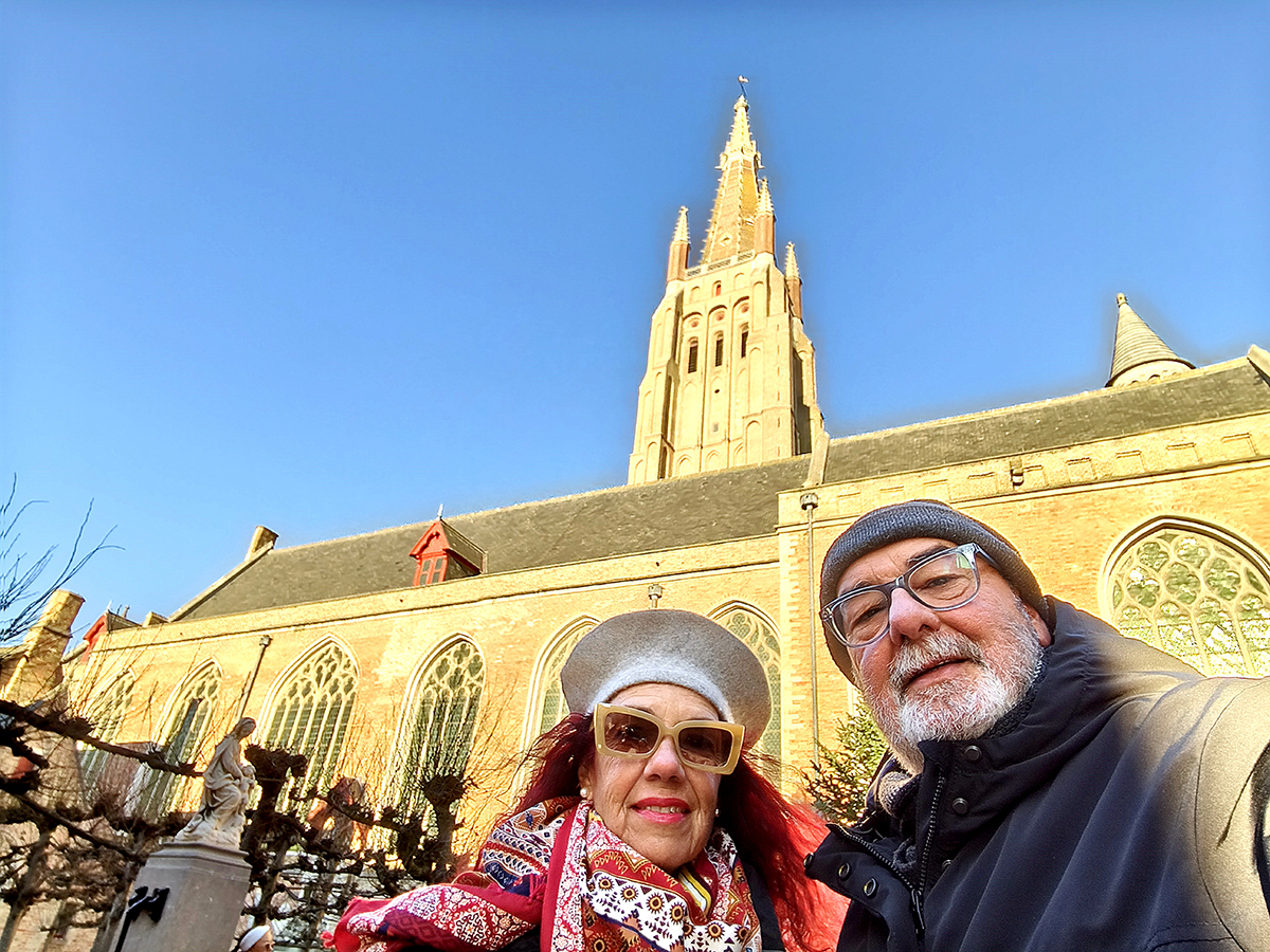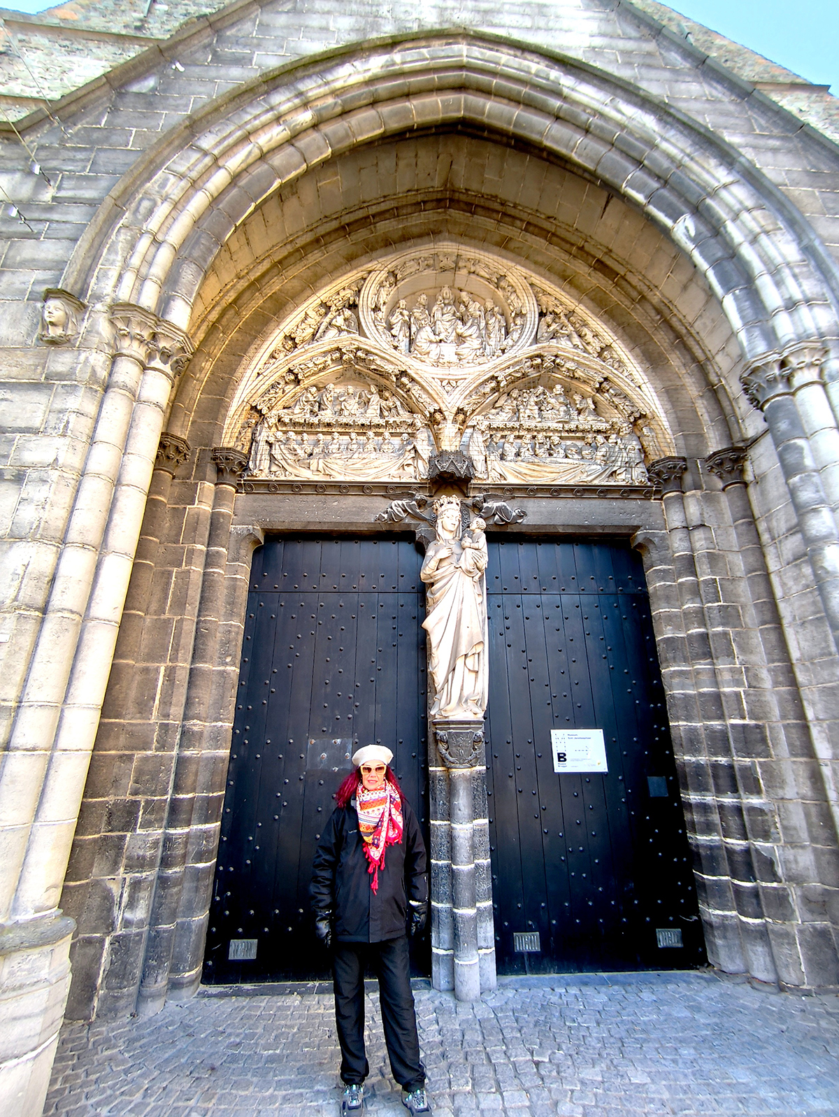 Continuamos nuestro paseo hasta la cercana catedral de San Salvador, Sint Salvatorskathedraal, la parroquia más antigua de Brujas, con partes de su estructura que datan de los siglos XII al XV. El edificio muestra una mezcla interesante de estilos debido a sus largos períodos de construcción y restauraciones. La poderosa torre de unos 99 m es la parte más antigua y combina elementos románicos y góticos. No pudimos acceder a su bello interior por estar cerrada.