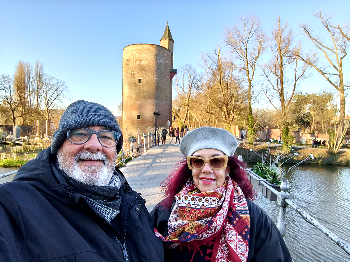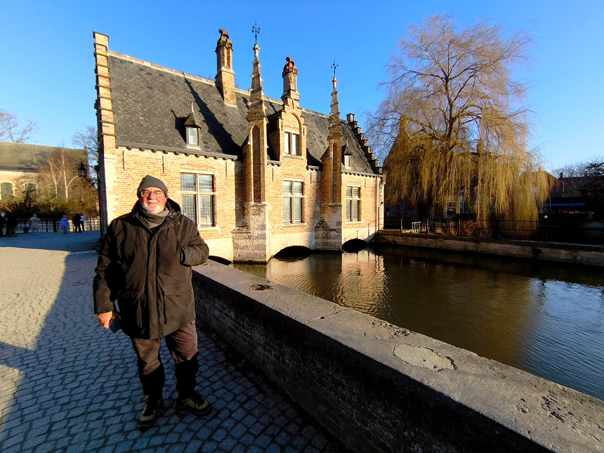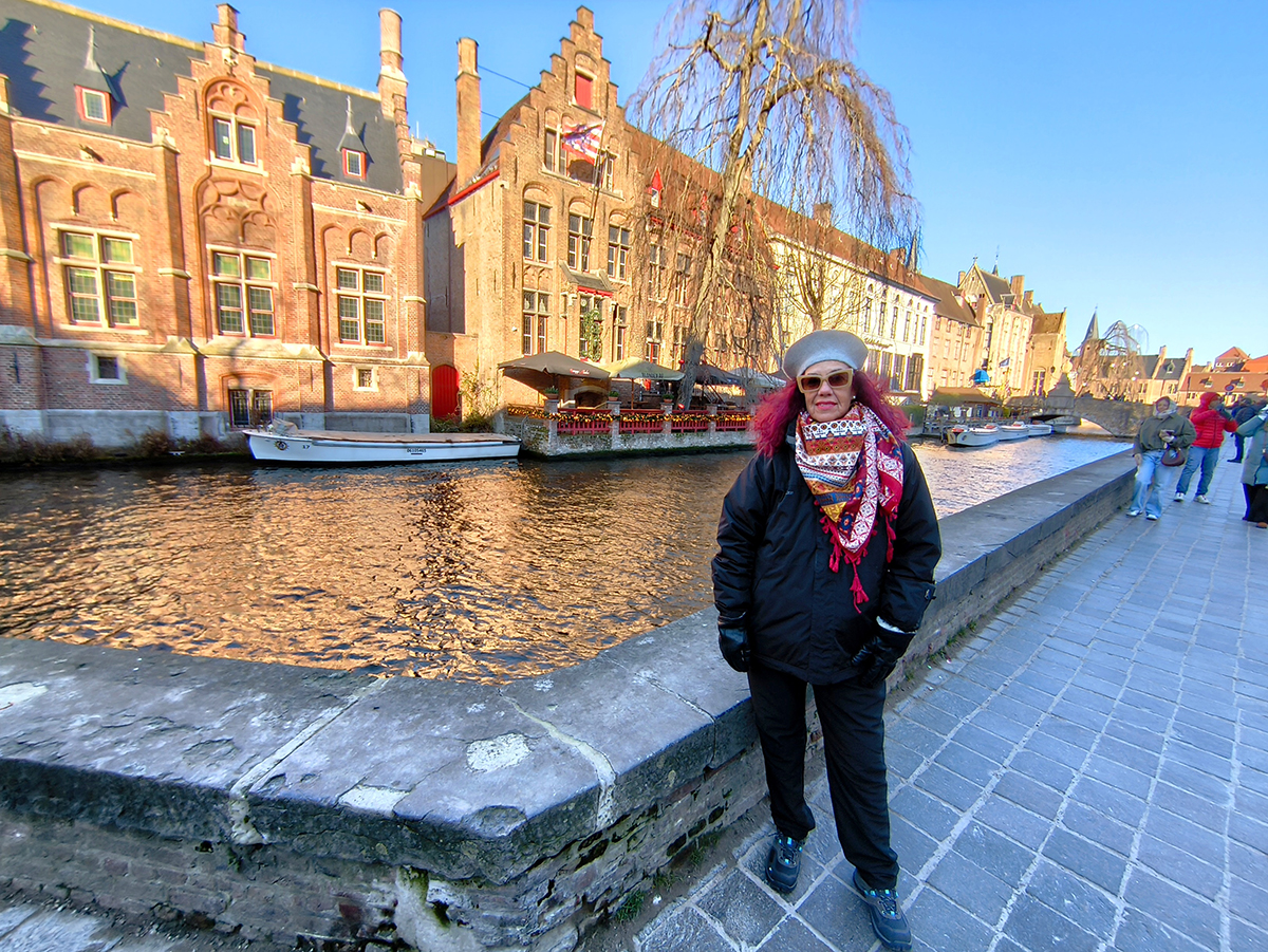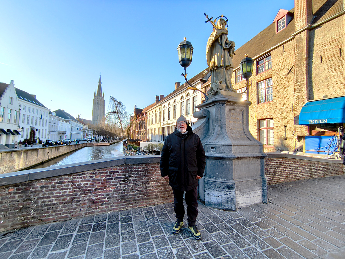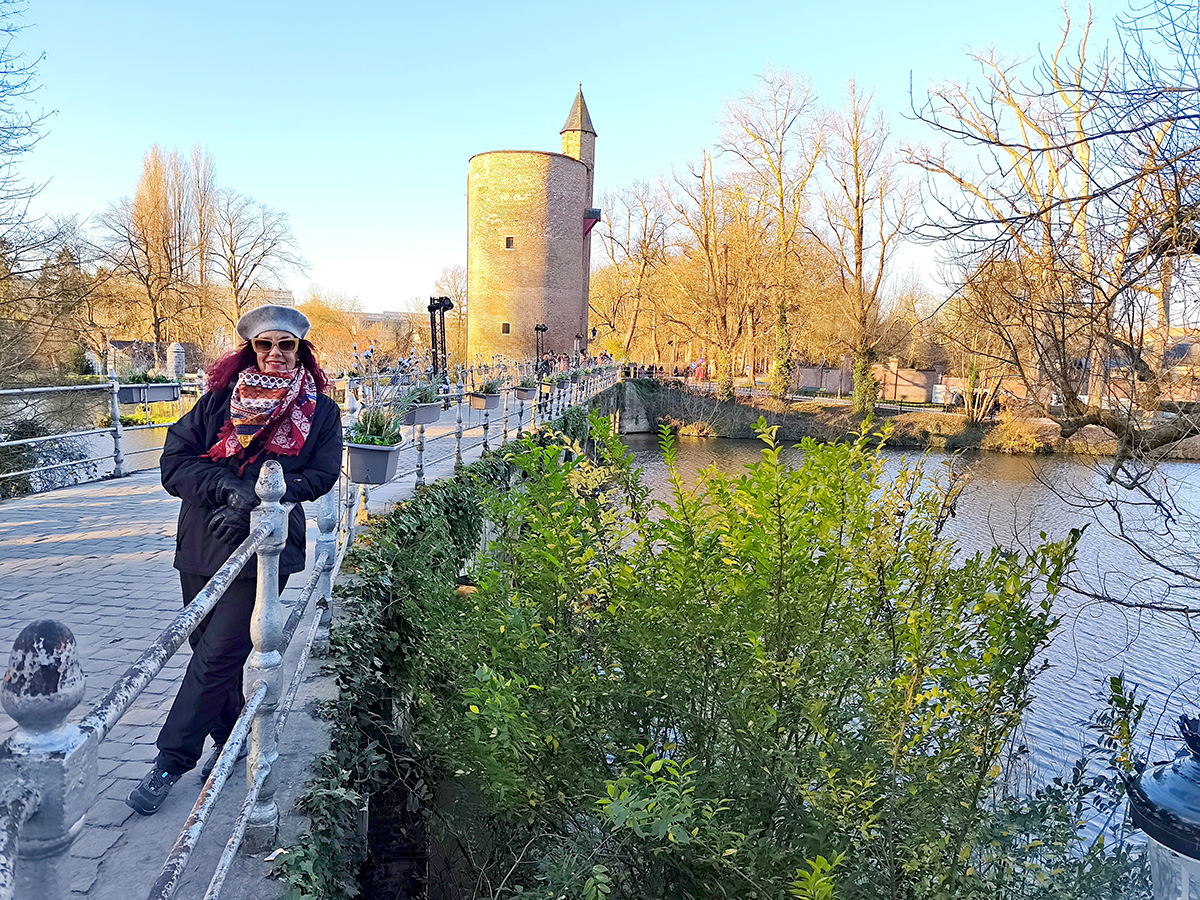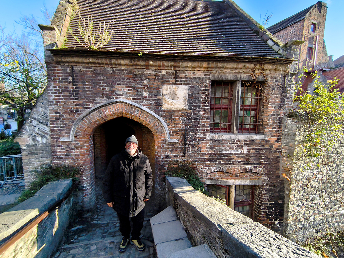 En este punto donde se cruza el Canal Dijver, es el lugar donde se obtiene una de las perspectivas más famosas de la ciudad y donde puedes ver tres pilares de la historia de Brujas en un solo vistazo: la Iglesia de Nuestra Señora o Onze-Lieve-Vrouwekerk con su torre de ladrillo de 115 m., el Hospital de San Juan o Sint-Janshospitaal, el antiguo sanatorio medieval, uno de los más antiguos de Europa que data del s. XII y el Canal con sus botes deslizándose suavemente por sus aguas.