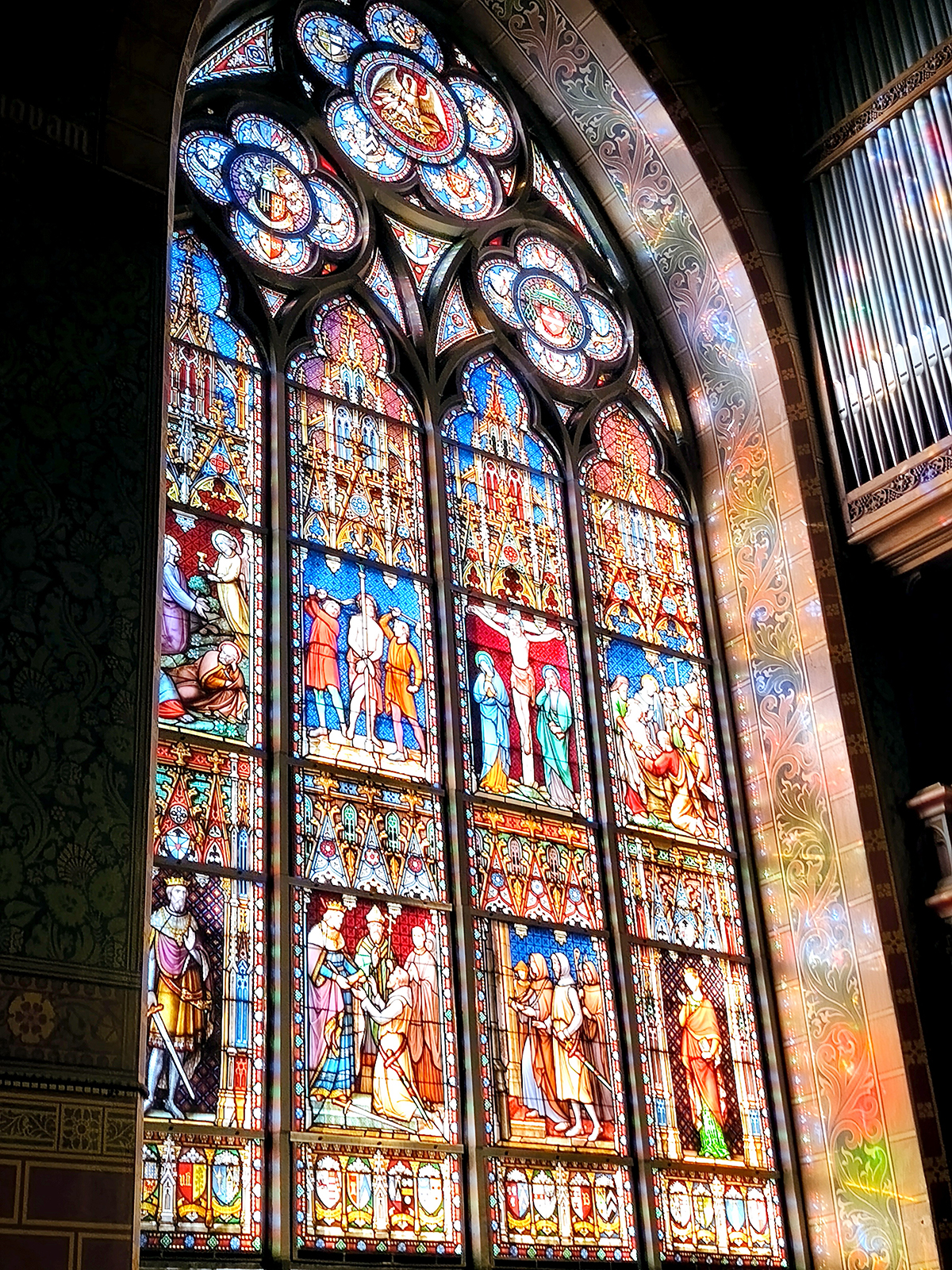 Para subir a la capilla superior, pasarás por una escalera renacentista. La capilla superior fue reconstruida en estilo neogótico en el s. XIX y está llena de color, frescos en las paredes, vidrieras coloridas y un altar muy ornamentado. Además es el lugar donde se conserva la reliquia de la Santa Sangre. Según la tradición, se trata de un trozo de tela que utilizó José de Arimatea para limpiar la sangre de Cristo tras la crucifixión y que fue traída a Brujas desde Tierra Santa en el s. XII tras la Segunda Cruzada. La reliquia se exhibe al público en ciertos momentos del día. Tendrás que guardar una pequeña cola y está prohibido hacer fotos.