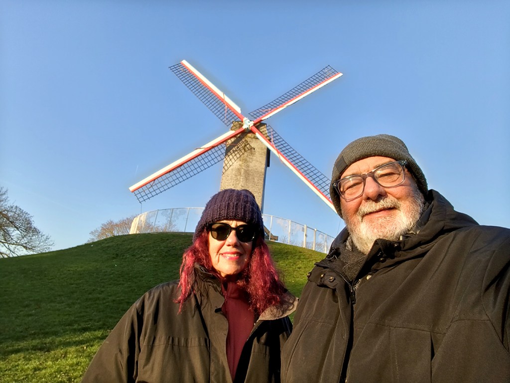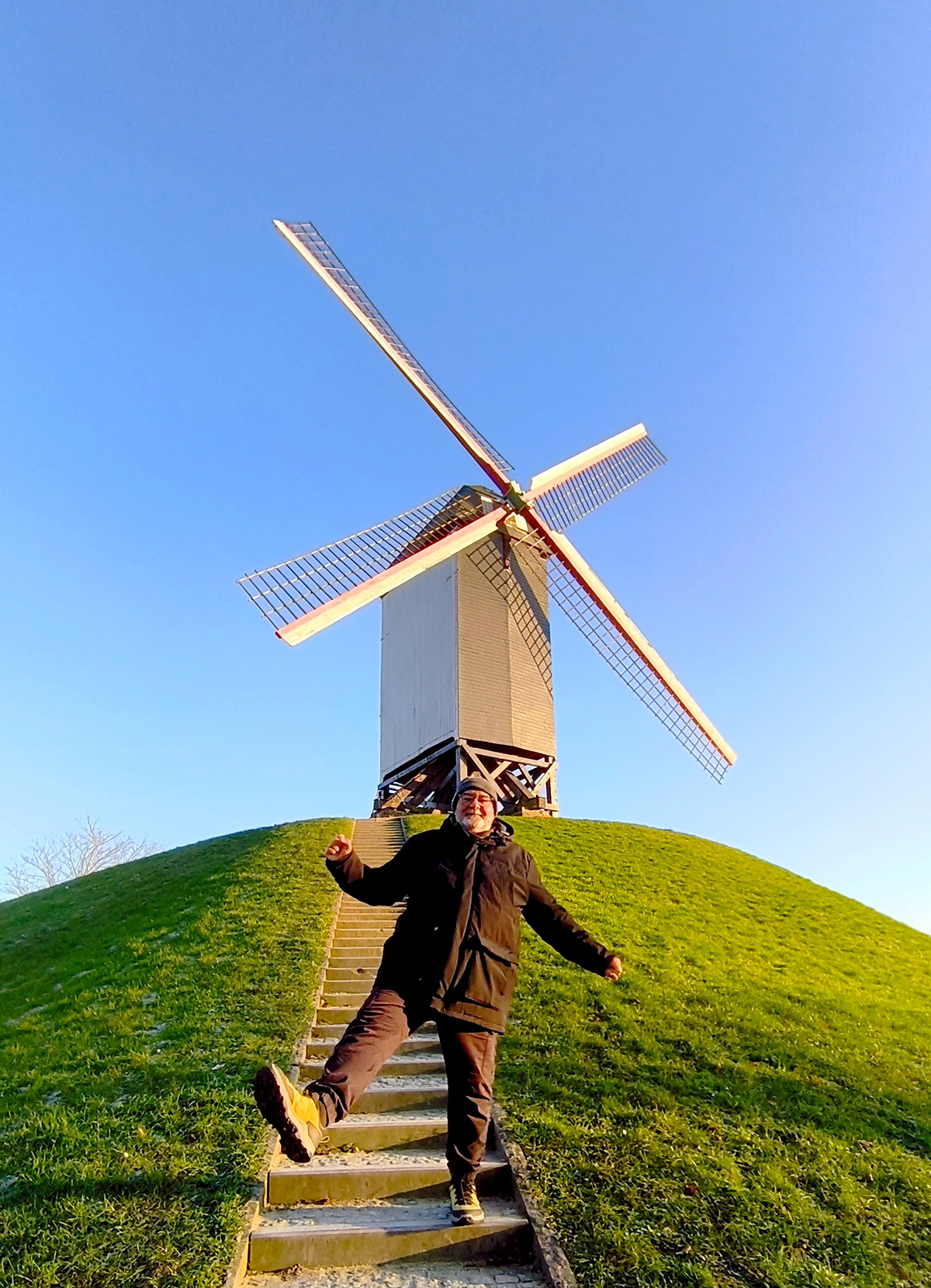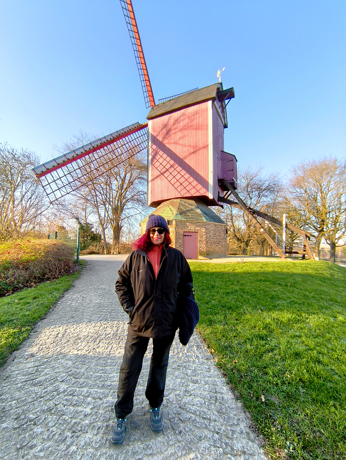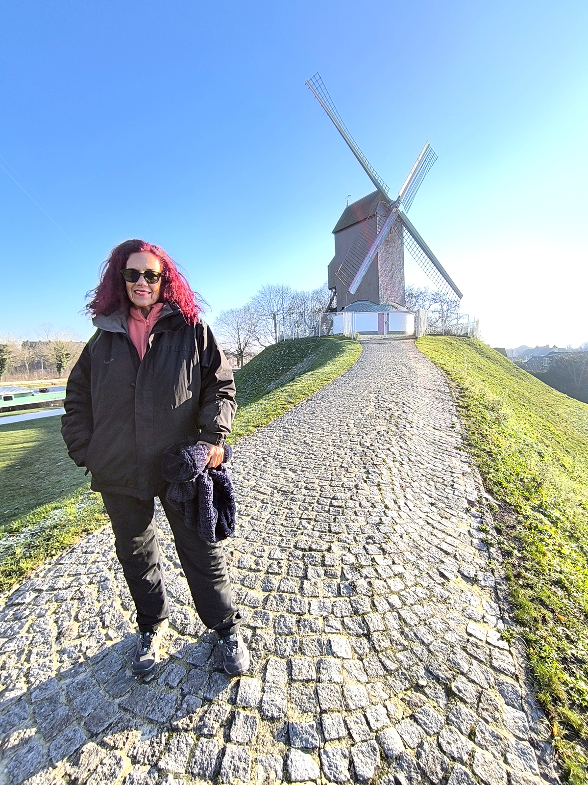 Los molinos de viento de Brujas, situados a lo largo del canal en el área de Kruisvest al noreste del centro histórico es una de la joyas visuales más emblemáticas de la ciudad. Están dispuestos a lo largo del canal circular, Ringvaart, sobre los restos de las antiguas murallas ahora cubiertas de césped. Aún hoy podemos ver circular las grandes barcazas que llevan mercancías hasta el Puerto de Zeebrugge a 15 km en el Mar del Norte.